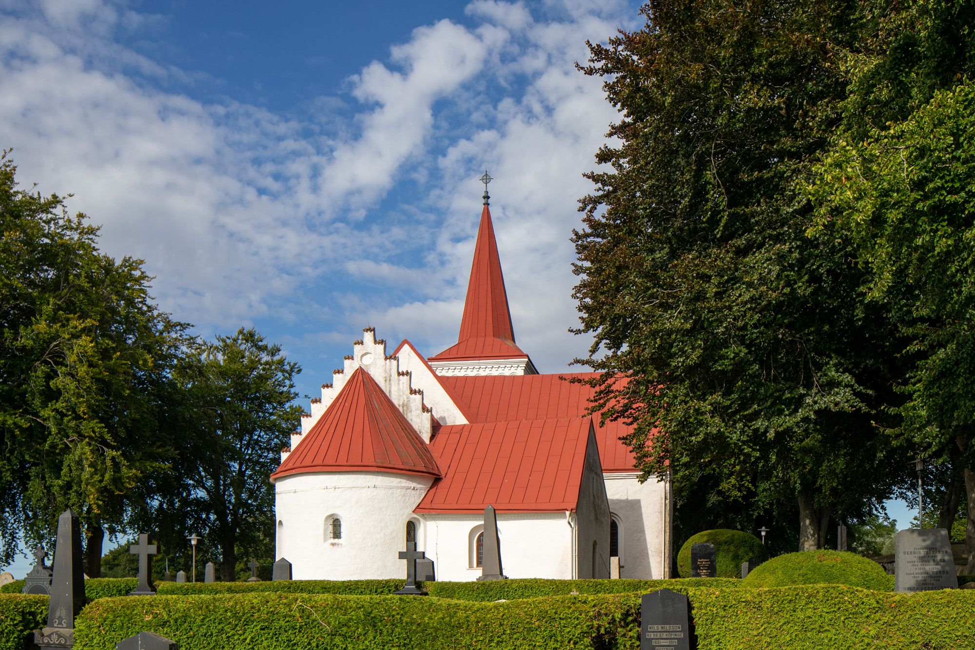 På kirkegården står en runesten fra perioden 970-1020. På stenen står der i oversættelse: Vrest/Orrist og Nøk og Kruse rejste denne sten efter Abe/Ebbe, deres fælle, en god dreng.