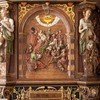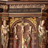 Topstykket har to relieffer med fremstillinger af Jesus i Getsemane Have samt Tilfangetagelsen. Alle reliefferne er malet i en ensfarvet lys farve for at imitere alabaster. De to relieffer flankeres af fritstående figurer, der repræsenterer de teologiske dyder Tro, Håb og Kærlighed.