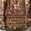 I storstykket dominerer et relief af nadveren. Runbuebilledet nord for nadverbilledet med teksten Humilitas med Kristi lidelsesredskaber og det tilsvarende billede på den anden side med teksten Gloria med Kristus omgivet af de syv lysestager fra Åbenbaringsbogen er senere tilføjelser. Disse felter har efter al sandynlighed indeholdt tekster. På soklerne under de fire hermer, der flankerer billederne i storstykket står der: ”1701 – stafferat – Pastor – J. Filenius”. Billederne er dog udført senere end denne staffering. Billedfelterne flankeres af hermer, der fremstiller apostle og dyder. På storvingerne er en fremstilling af Mariæ Bebudelse med Gabriel på den nordlige og Maria på den sydlige vinge i kartoucher omgivet af blandt andet engle og frugtklaser.