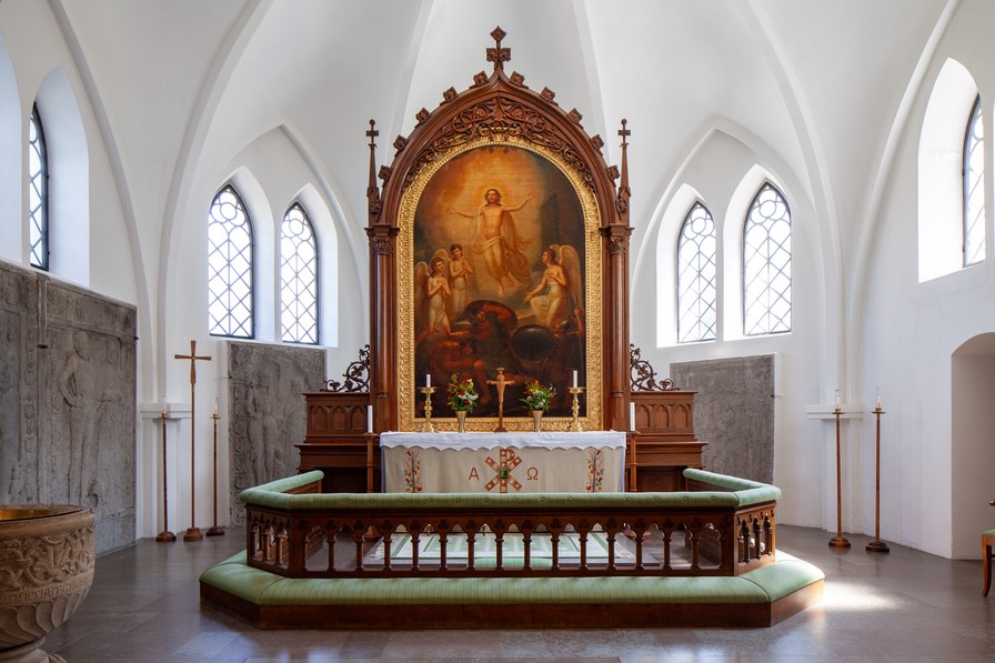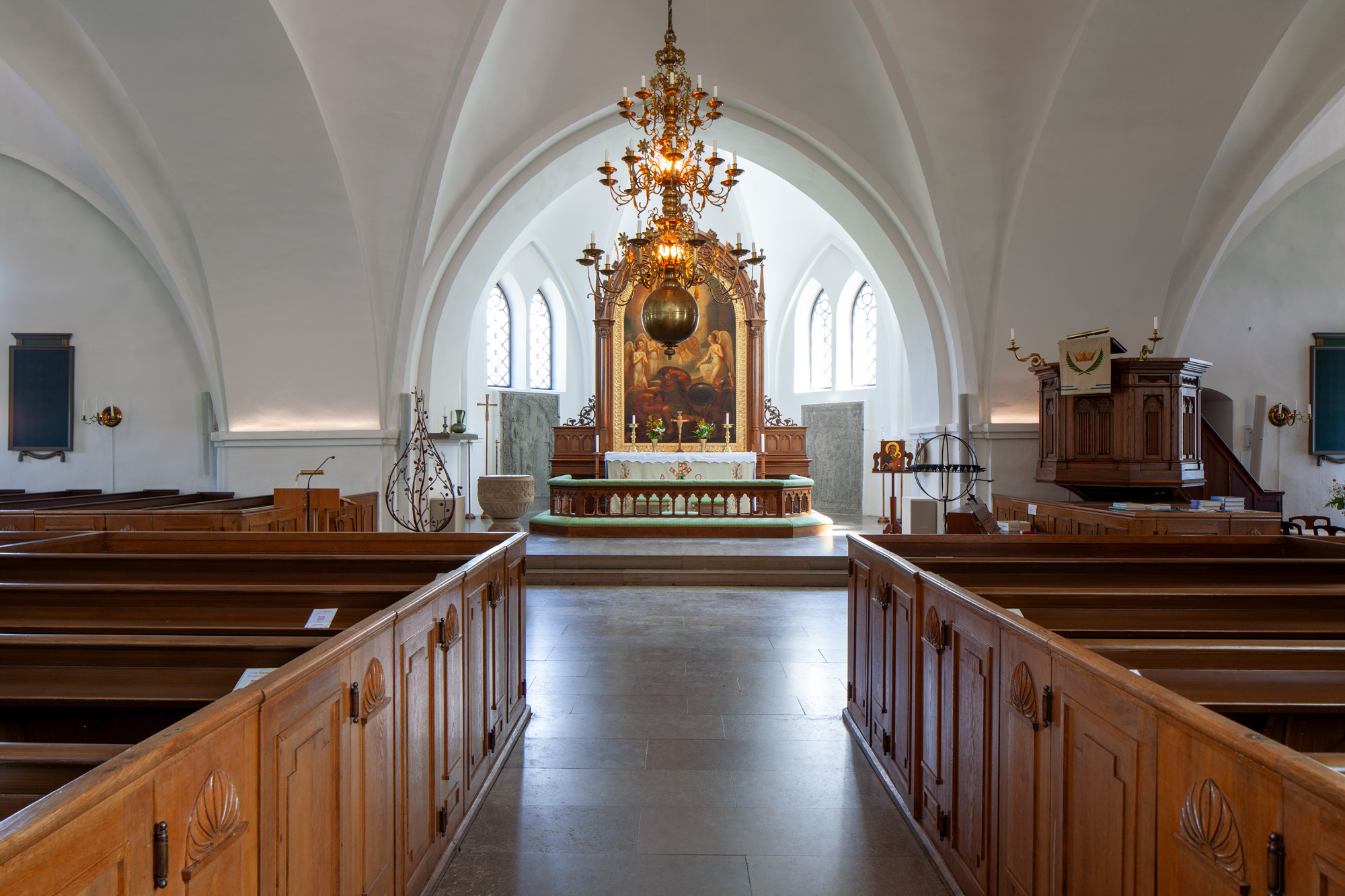 Den sengotiske udsmykning er udført af Helsingborgværkstedet.