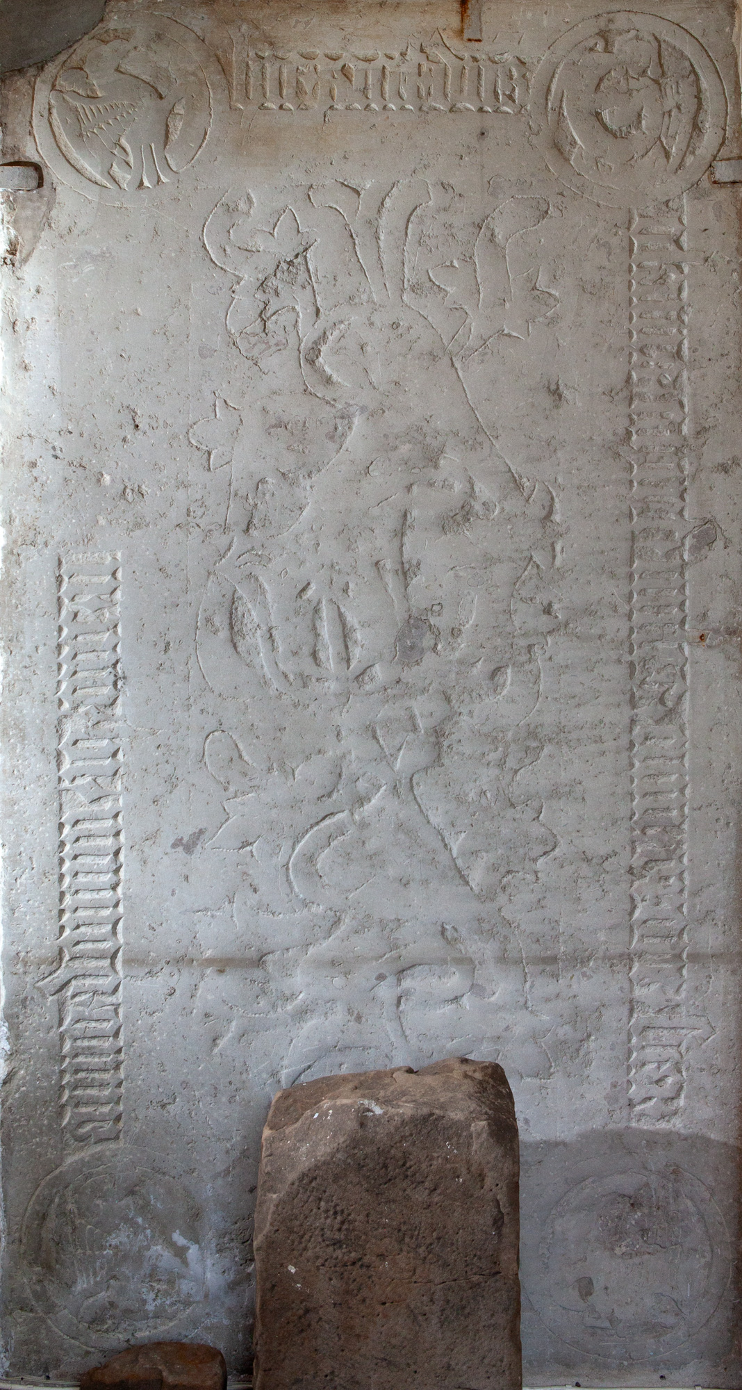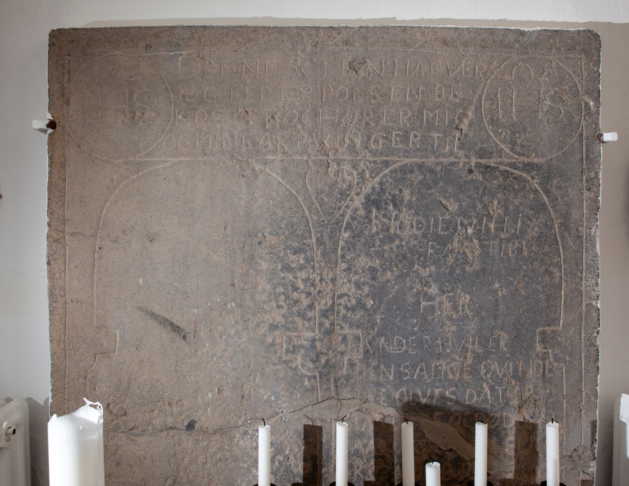 Teksten i det første felt er udslidt, men noget kan læses i det andet felt: