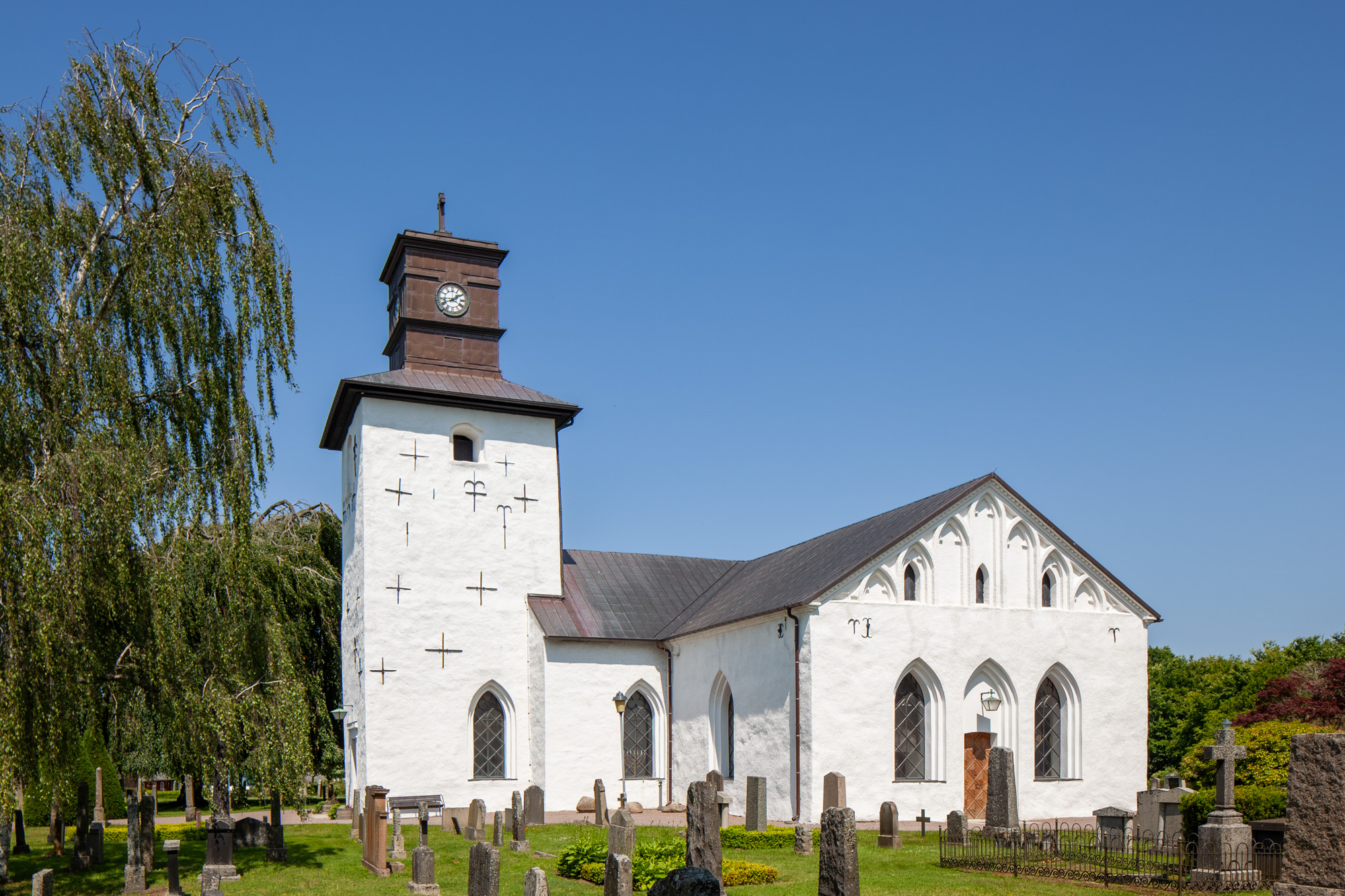 Kirken er opført i første halvdel af 1100-tallet og bestod oprindeligt af skib og kor (uden apsis). Et tårn menes at være opført i senmiddelalderen. I samme periode blev der bygget et våbenhus foran sydindgangen. I 1400-tallet fik kirken hvælvinger, og i 1500-tallet fik tårnrummet et stjernehvælv. Der var en åbning mellem tårnrummet og skibet. Indtil 1690 stod døbefonten i tårnet. En korsarm blev opført på skibets nordside i 1746. 100 år senere fik C.G. Brunius til opgave at opføre en korsarm mod syd, mens korsarmen mod nord blev gjort bredere. Ved samme lejlighed blev de ældre vinduer udvidet. 1894 blev det nuværende femsidige kor opført, mens det middelalderlige kor blev nedrevet.