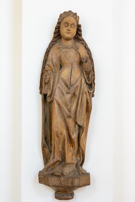Uidentificeret helgeninde fra midten af 1200-tallet. Den opbevares på Lunds Universitets Historiska Museum. Der findes en kopi i kirken.