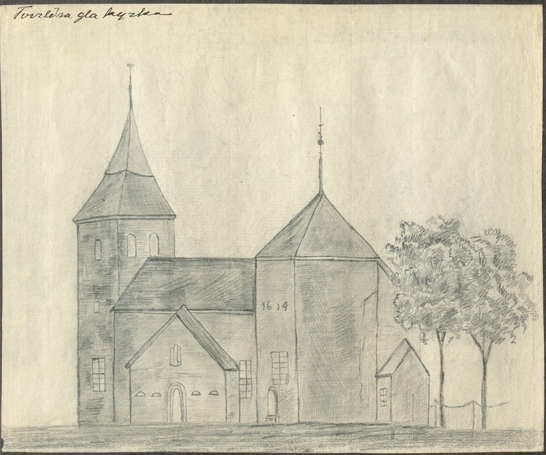 Om den gamle kirke hedder det i en indberetning af 17. marts 1828, at den var 36 alen lang, 11½ alen bred, vesttårnet opført 1800, tårn og våbenhus tækket med tegl.