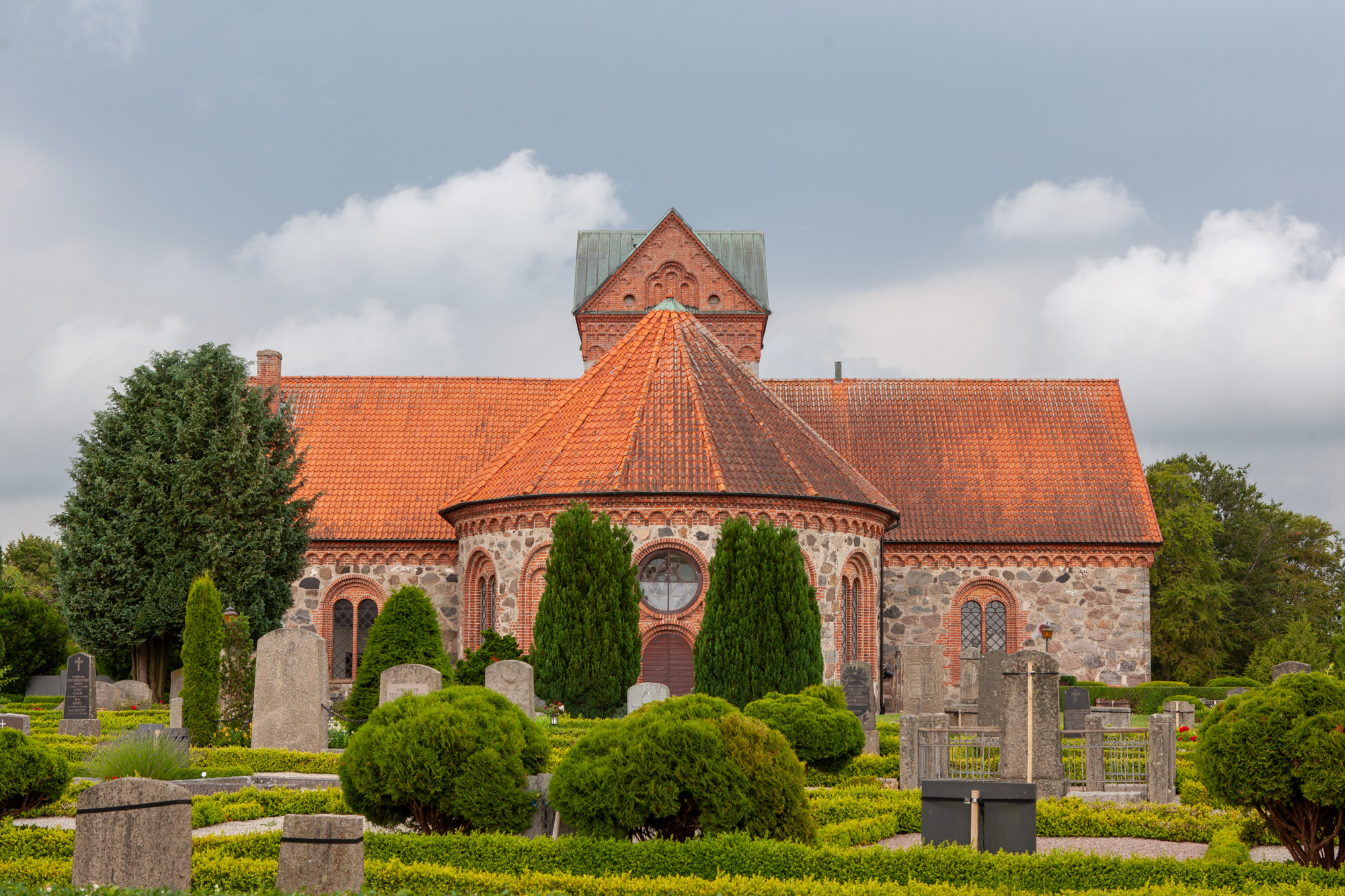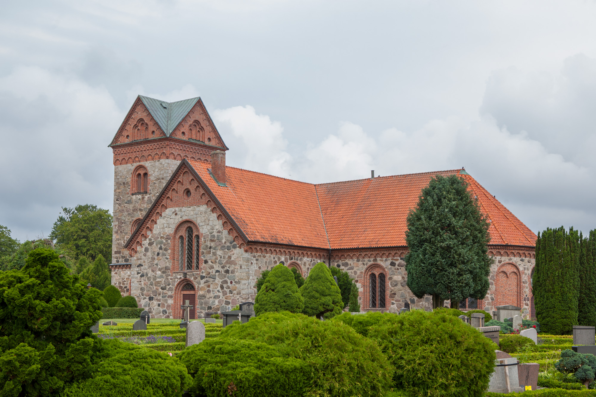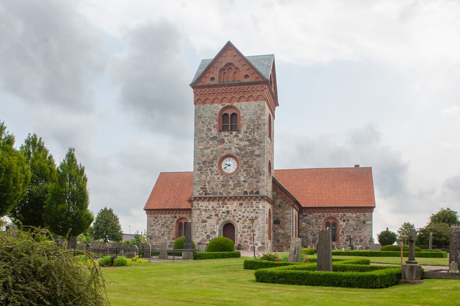 Den romanske kirke bestod af skib og kor. Skibet havde tre fag og koret et. Den var opført af tilhuggede kampesten med hjørner og døromfatninger af sandsten. Skib og kor havde krydshvælv.