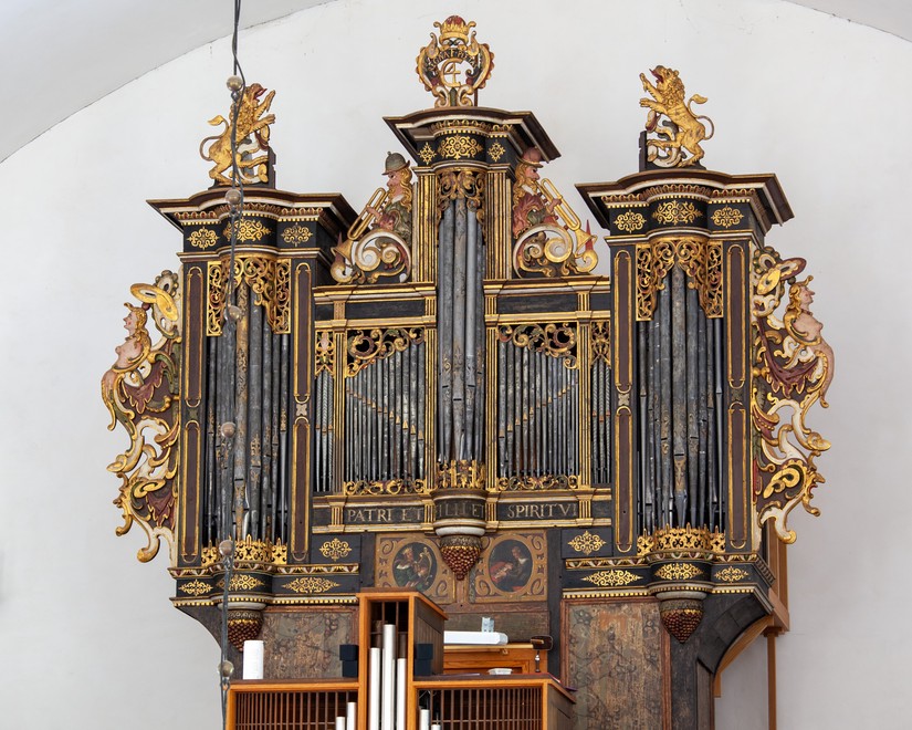 I pulpituret er indsat et felt med en kort skildring af orglets historie.