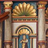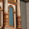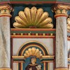 Baldakinen bæres af to søjler med glatte skafter, joniske kapitæler og prydbælter. De hviler på konsoller med ansigtsmasker.