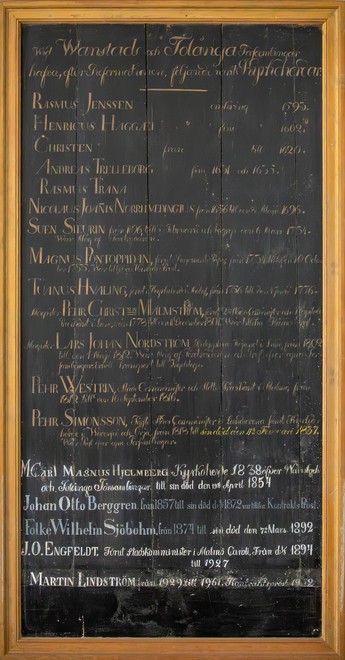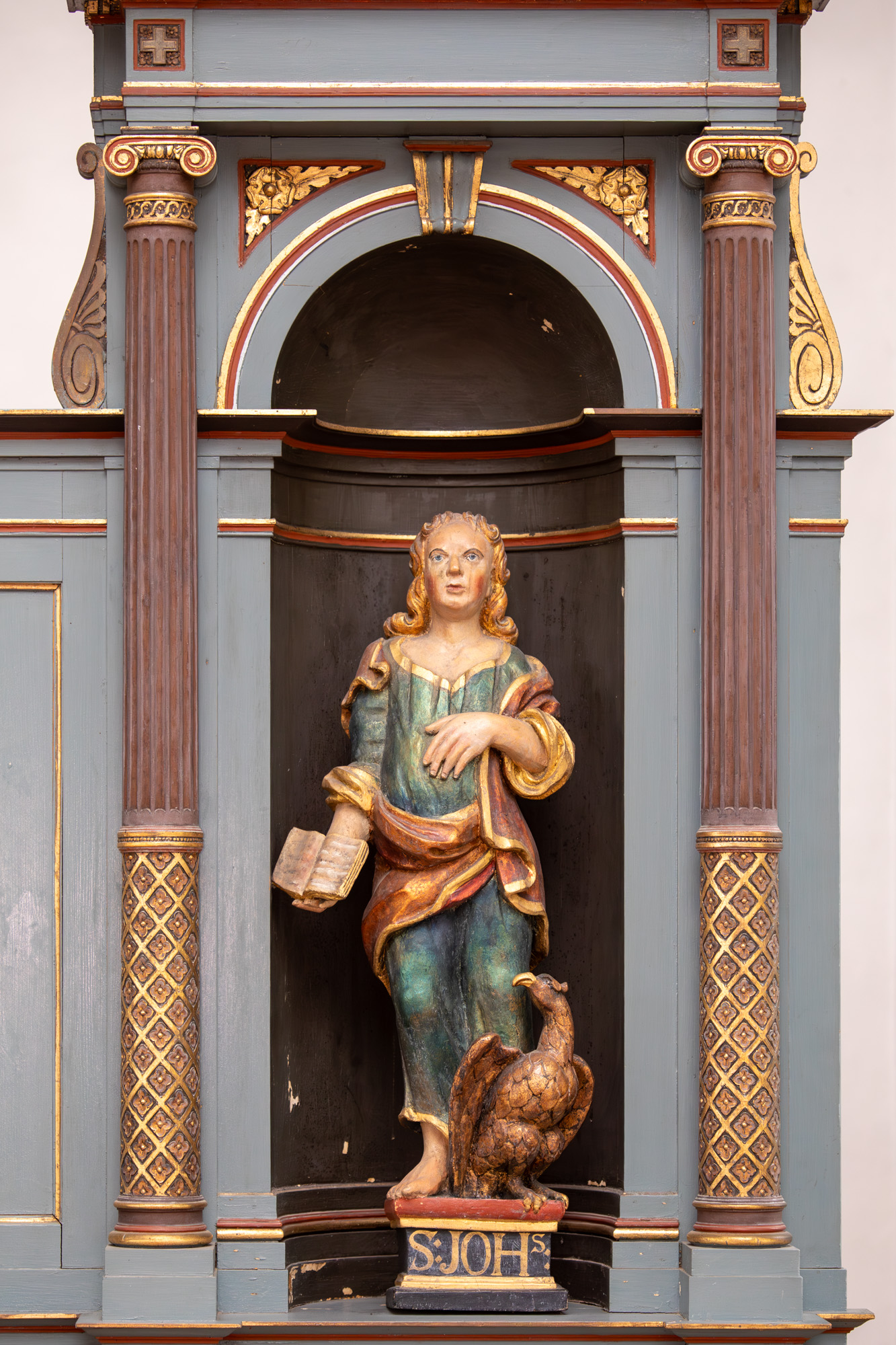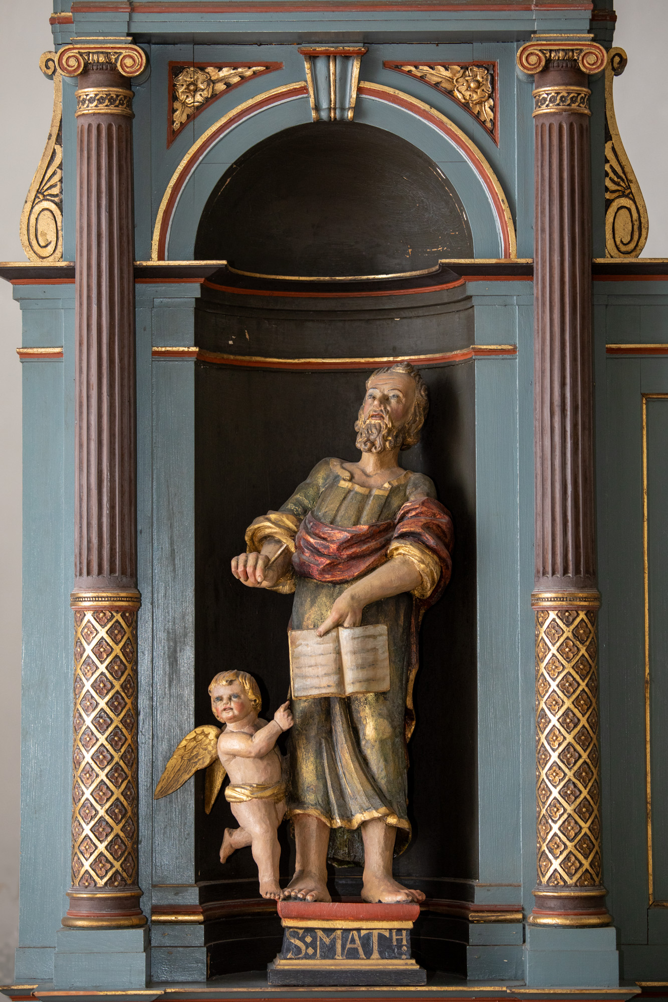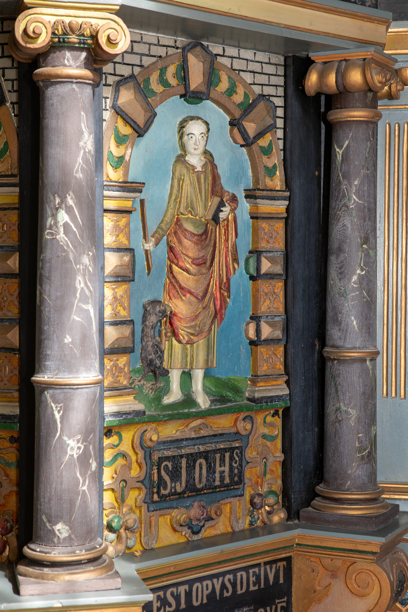 I altervæggen, der afskærmer sakristiet, findes nogle figurer fra 1600-tallet, som forestiller evangelisterne.