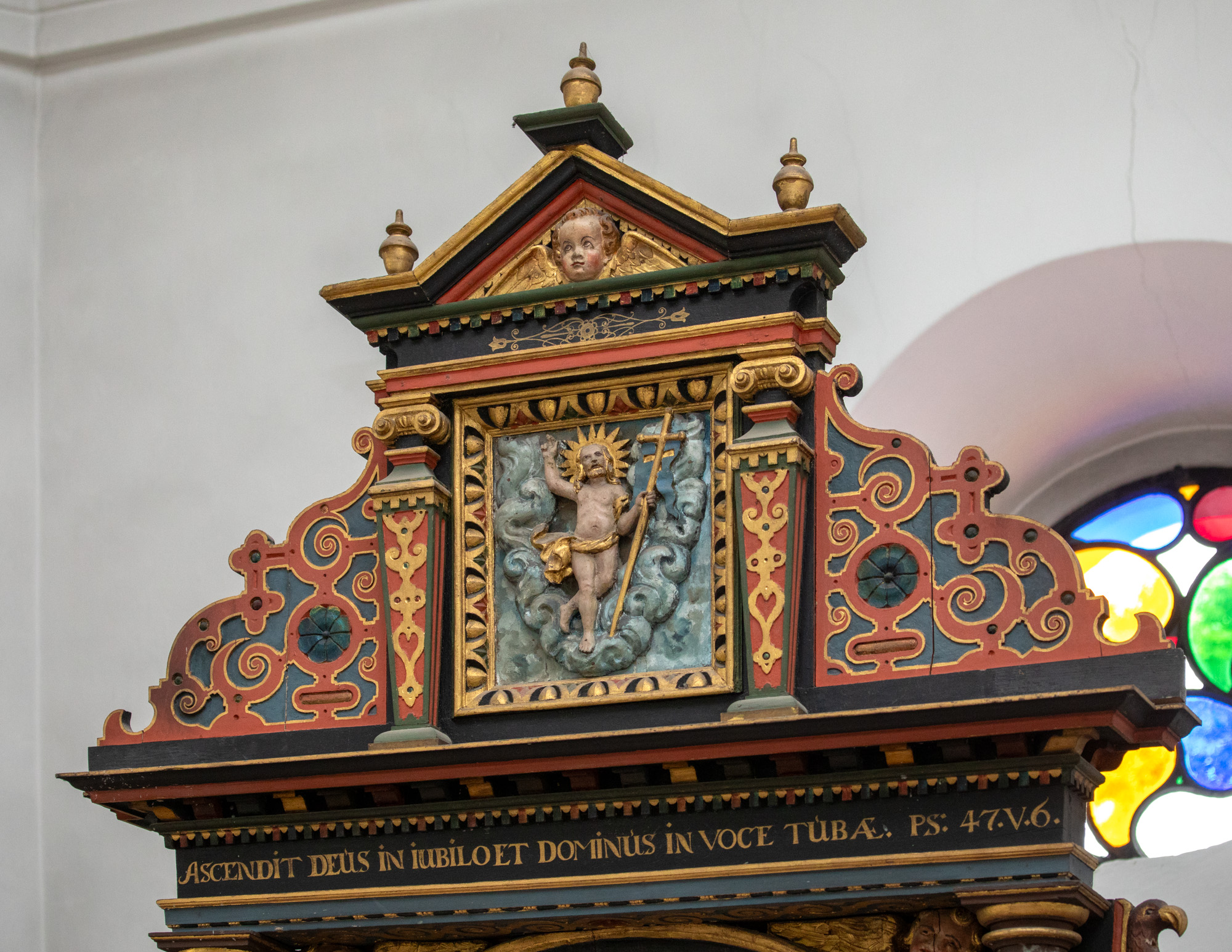 Ascendit deus in iubilo et dominus in voce tubæ. Ps. 47.V.6. (“Gud drager op under jubelråb, Herren drager op til hornets klang.”)