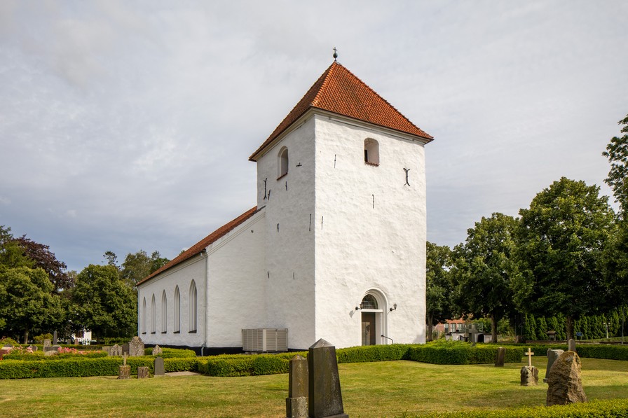 Kirkens tårn er det eneste, der er tilbage af den gamle kirke. Den blev revet ned, og en ny bygget op samme sted 1869. Den romanske kirke bestod af skib, kor og apsis. Den var opført sidst i 1100-tallet eller i 1200-tallet. Tårnet er muligvis romansk og opført af granit og kalksten foruden teglsten. Oprindeligt var tårnet højere, men efter en sammenstyrtning af murværket 1764, fik det sin nuværende højde. Ved opførelsen af skibet er der genanvendt sten fra middelalderkirken.