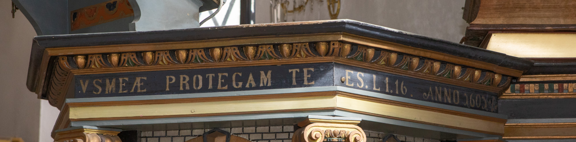 Ponam verba mea in ore tvo et vmbra manvs meæ protegam te. Es. LI.16. (”Jeg lægger mine ord i din mund og skjuler dig i skyggen af min hånd.”
