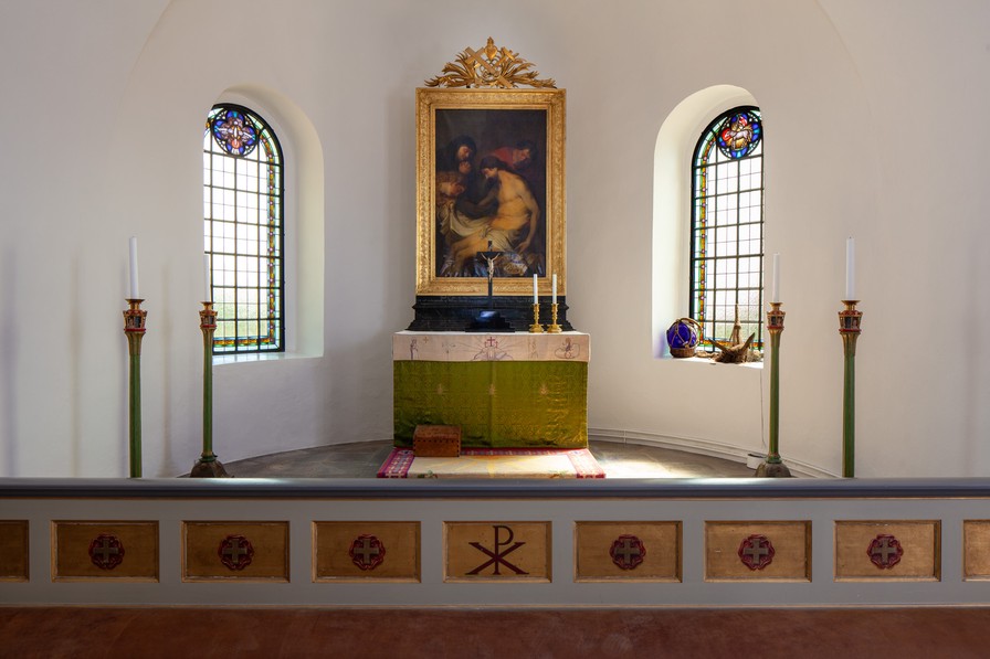 Alterbilledet er en kopi af Anthon van Dycks Gravlæggelsen udført af Nils Månsson Mandelgren 1851. Han var født nogle få kilometer fra kirken.