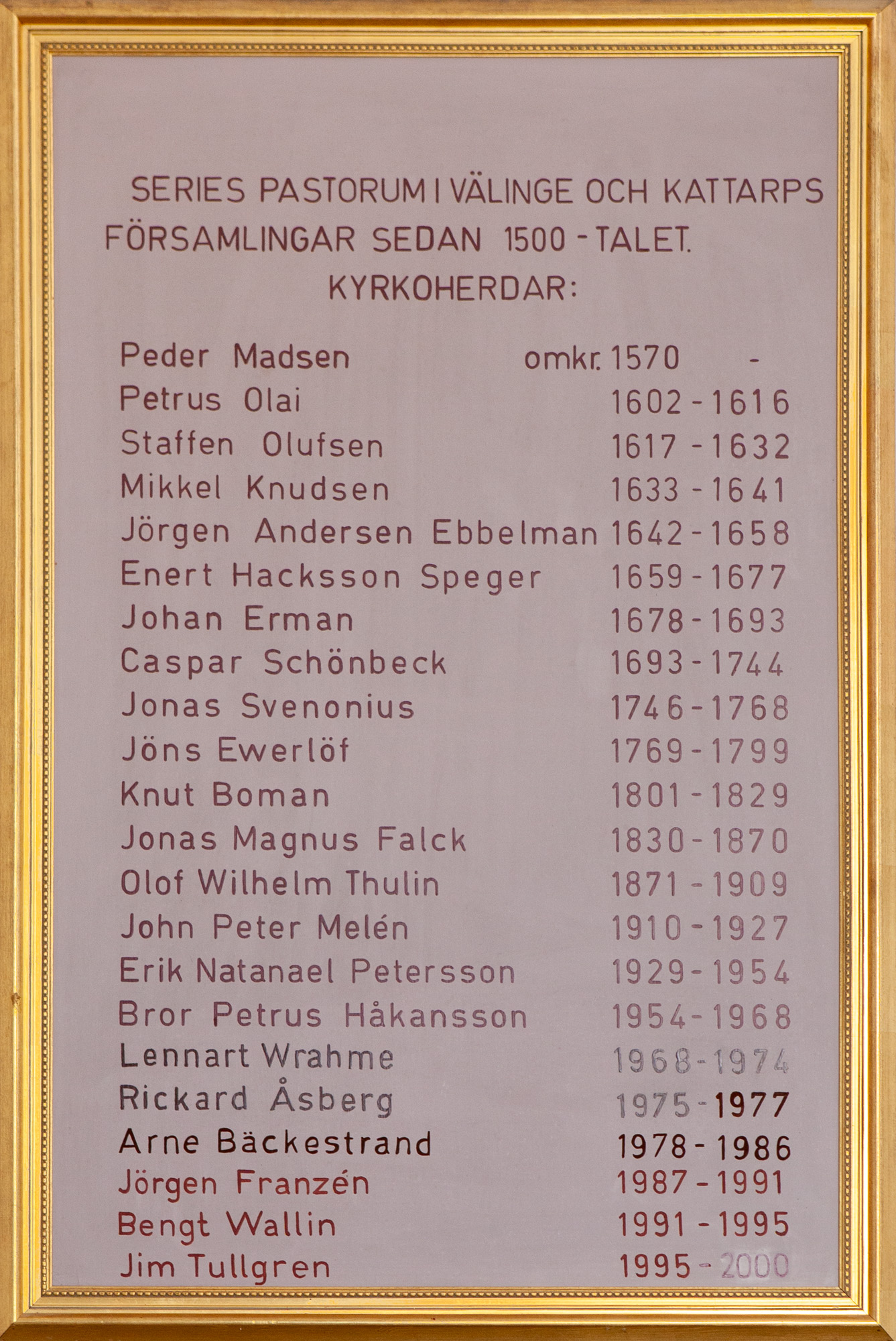 Peder Olsøn var præst ved kirken. Der er dog ingen forklaring på sammenhængen mellem dette årstal og årstallet for anskaffelsen af prædikestolen 1631.