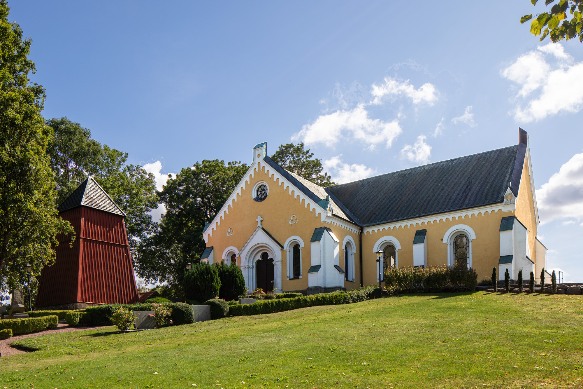 Oplysningerne om den middelalderlige kirke er sparsomme. Den menes at være opført i anden halvdel af 1100-tallet og bestod af skib, kor og apsis. I senmiddelalderen blev der bygget hvælvinger, ligesom der blev bygget et våbenhus på kirkens nordside. 1740 blev der bygget en nykirke. På kort fra omkring år 1800 kan man sammenholdt med en skitse fra 1698 se, at kirken er blevet forlænget mod øst, idet der er opført et nyt kor. 1891 blev kirken helt ombygget, hvorved kun skibets to vestligste fag blev bevaret.