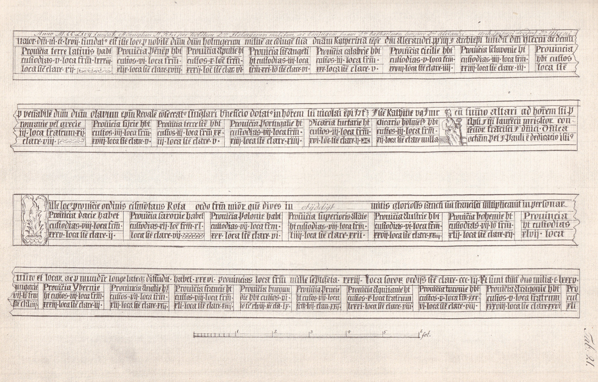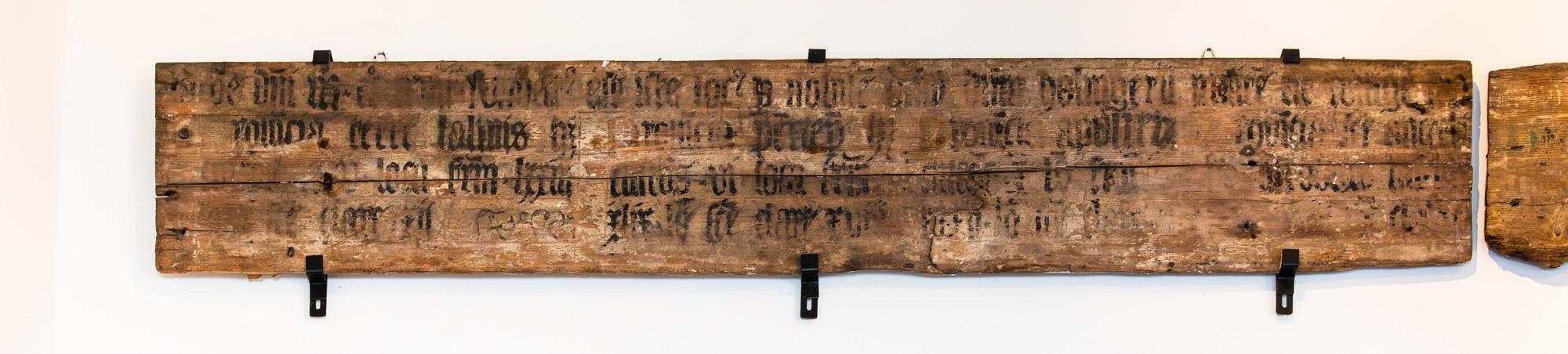 Over korstolene sad et panel med en længere tekst om franciskanerordenen. Det består af seks brædder af fyr cirka 40 centimeter i bredden og i alt 17,5 meter langt. Efter nogles mening skal det oprindelig have været 26 meter langt.