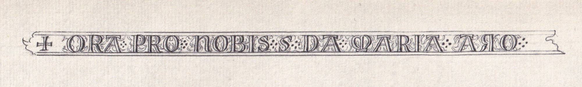 Indskrift på den ældste klokke: Ora pro nobis (Bed for os) da Maria aro(?)