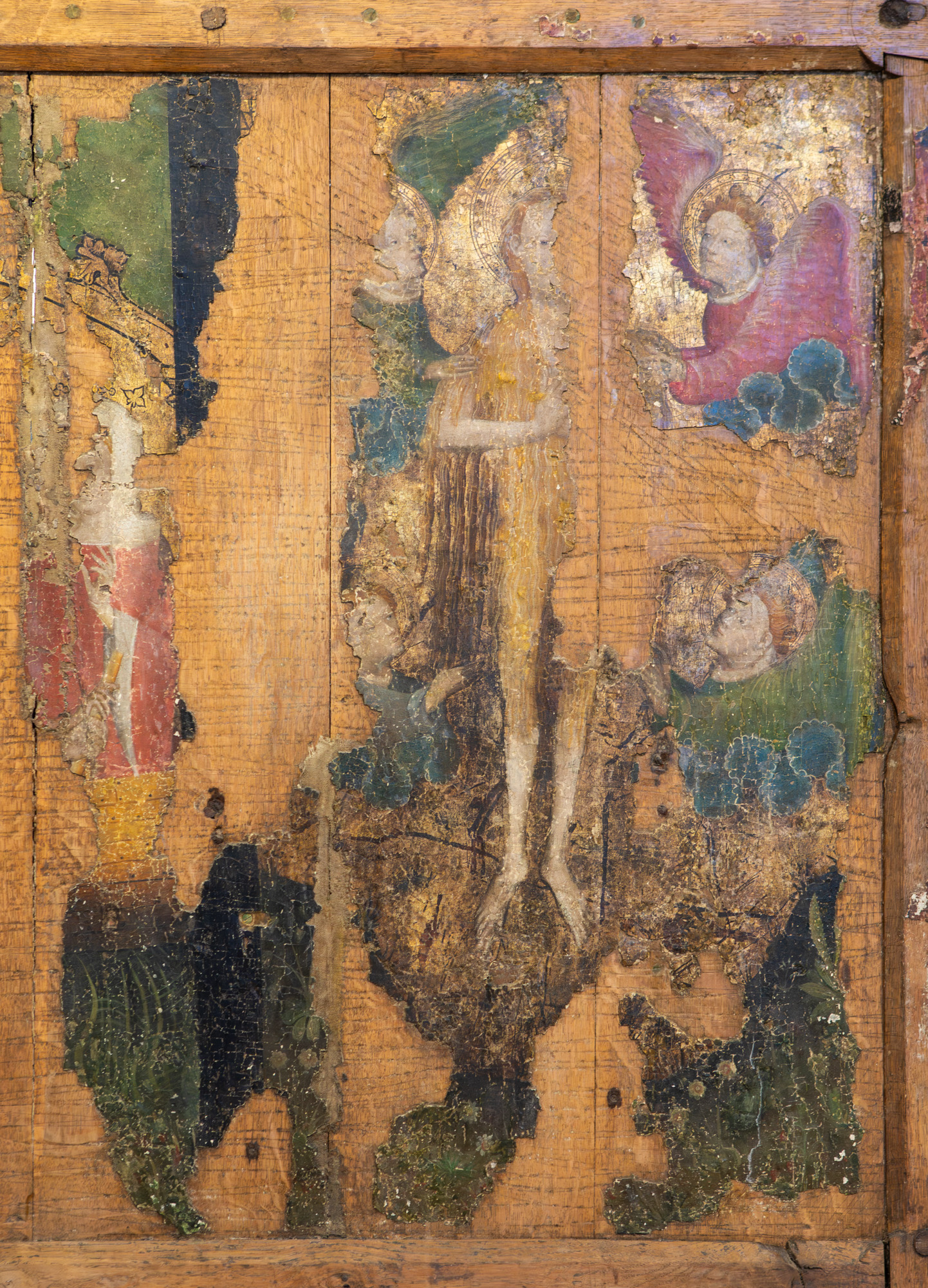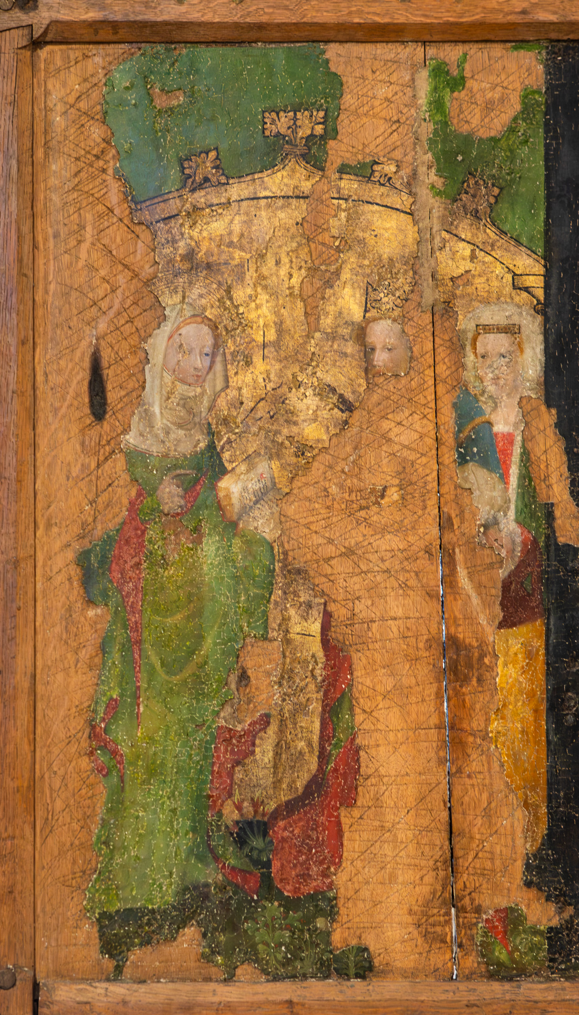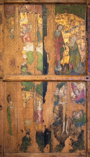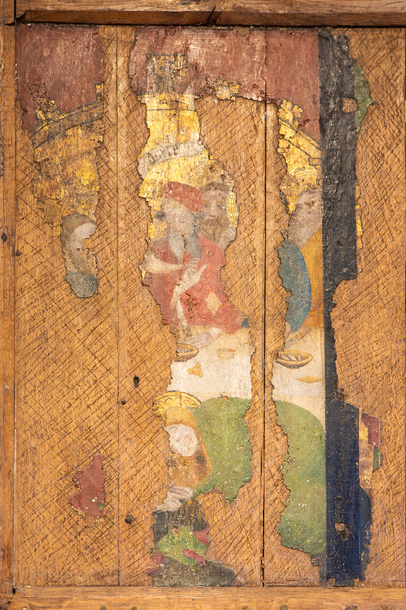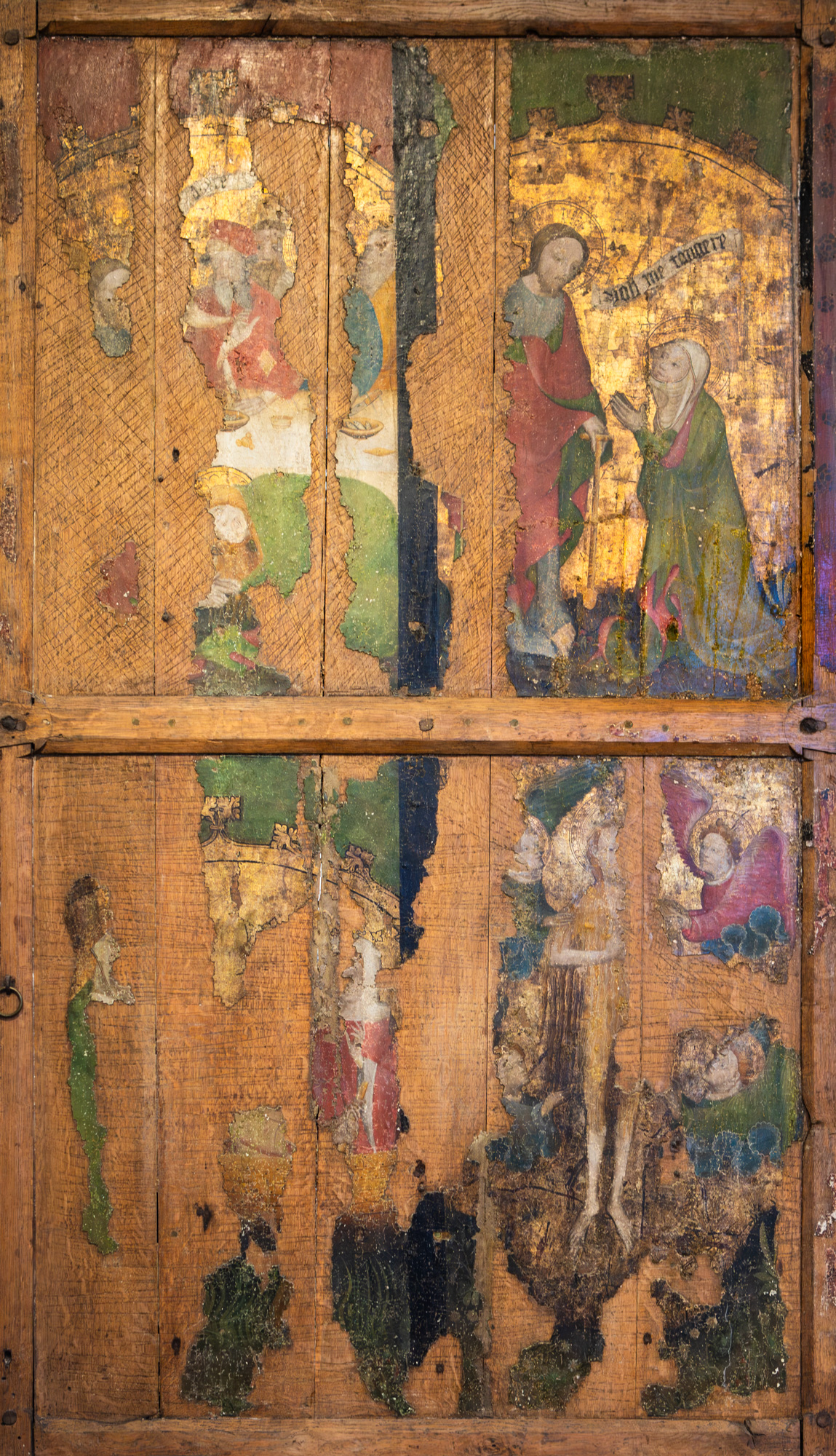 - Maria Magdalene genkendes fra det forrige billede. Derudover er der fragmenter af en dåbsscene, hvor en biskop løfter hånden velsignende over en mand og en kvinde.