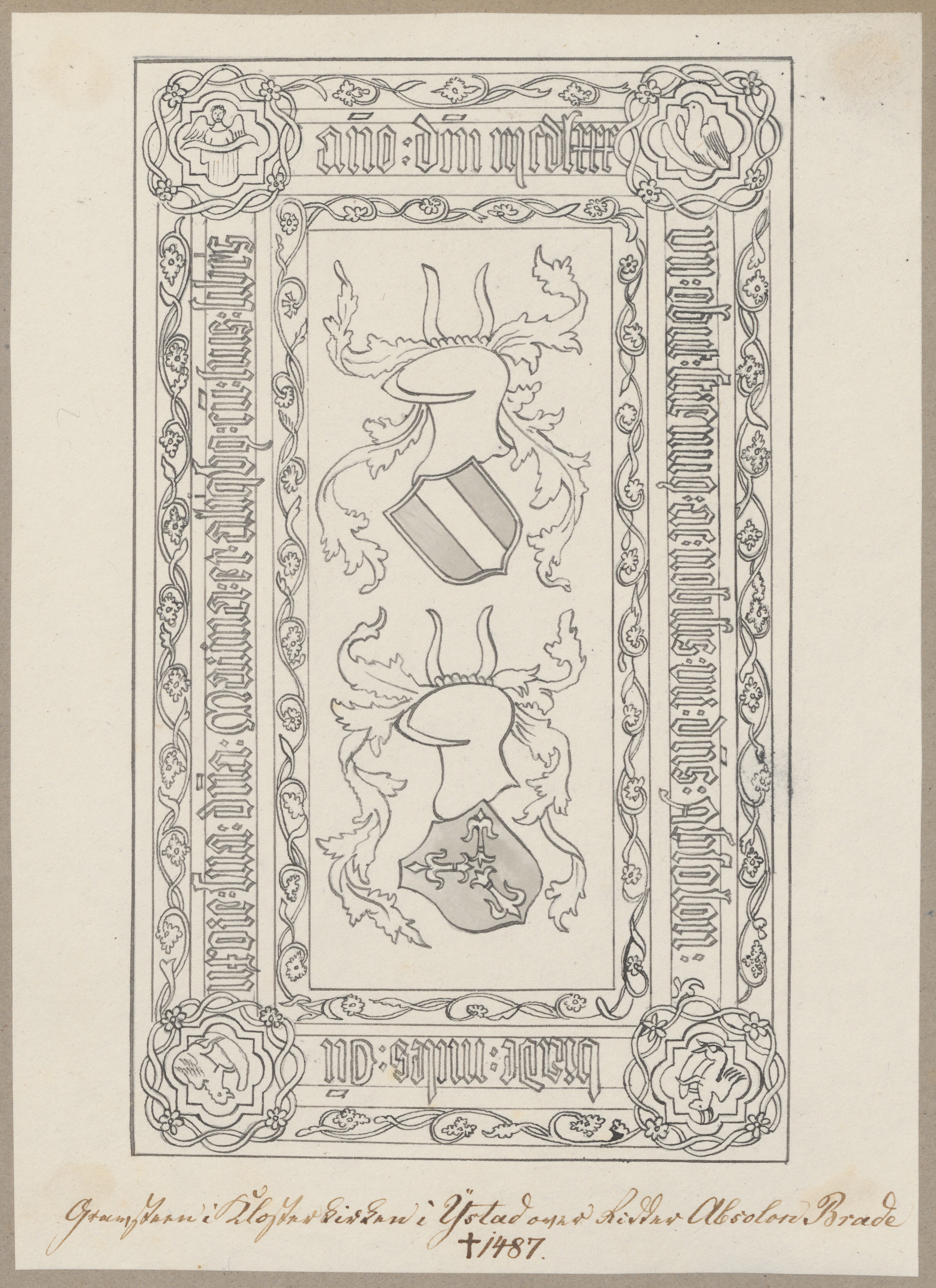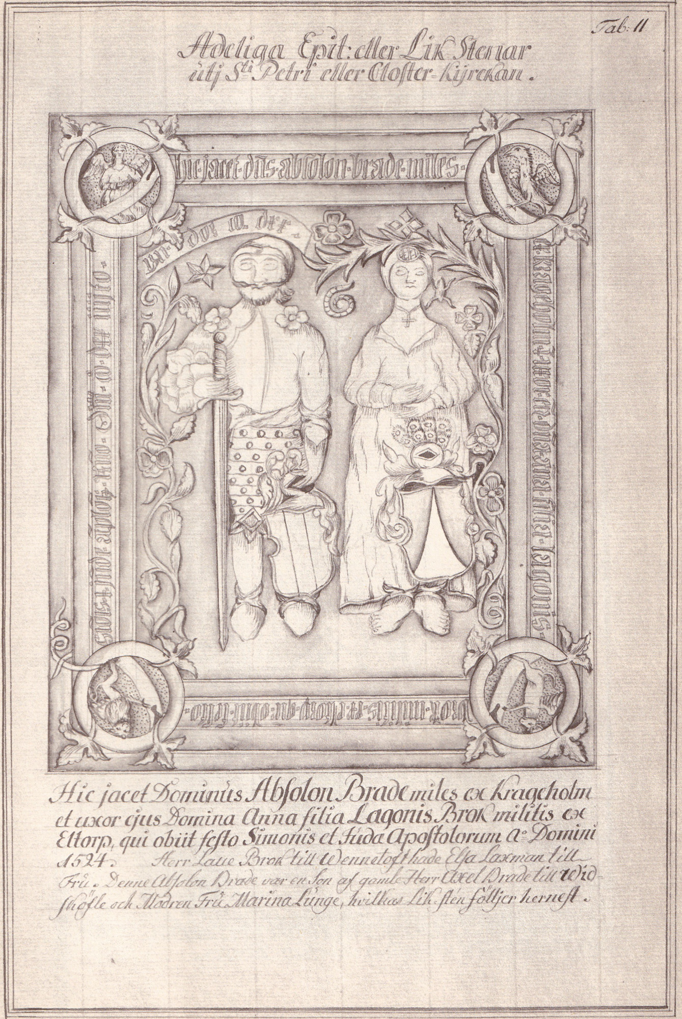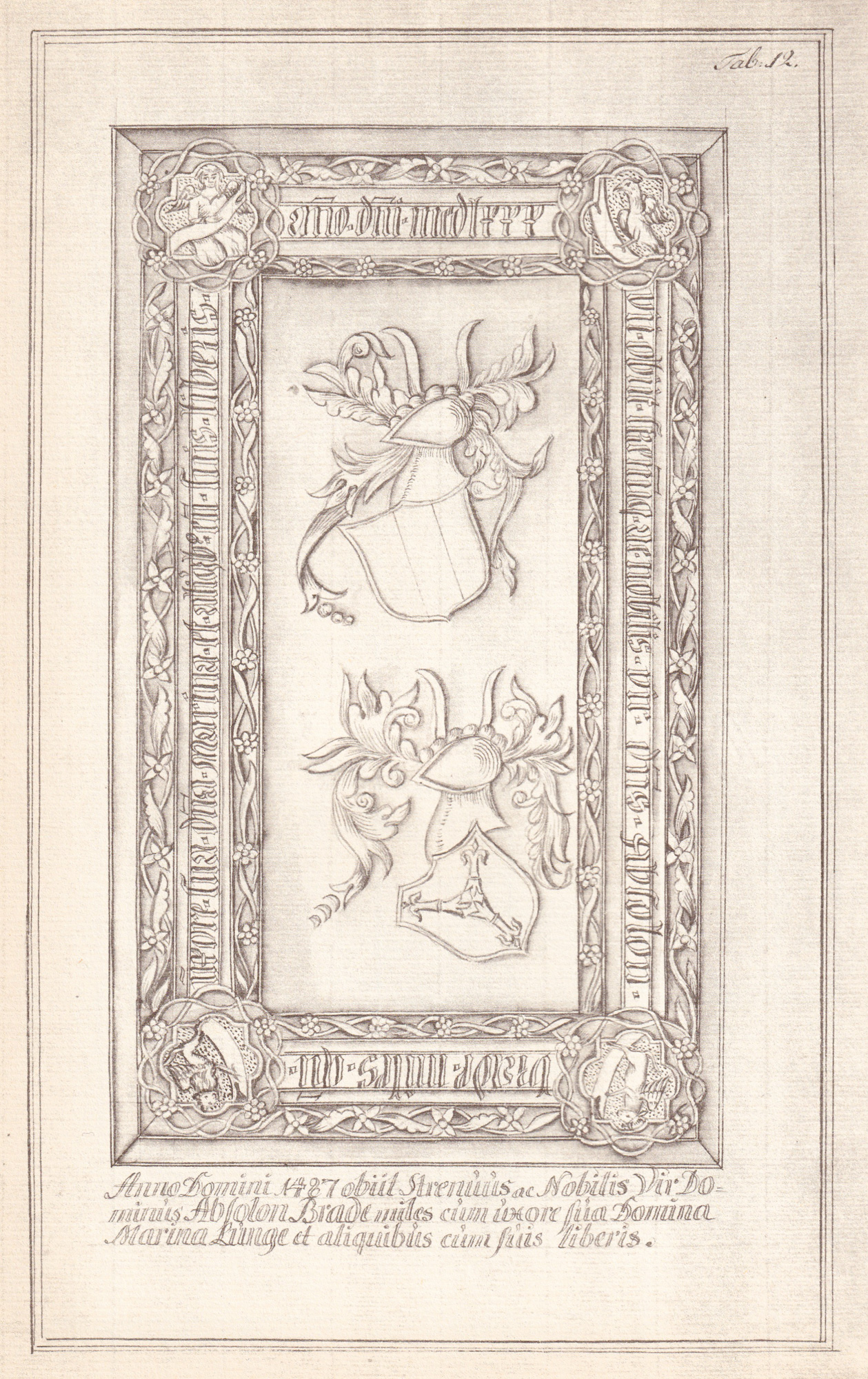 Anno Domini 1487 obiit strenuus (?) ac nobilis vir dominus Absalon Brade miles cum uxore sua domina Marina (Marna Lunge) et aliquibus cum suis liberis.