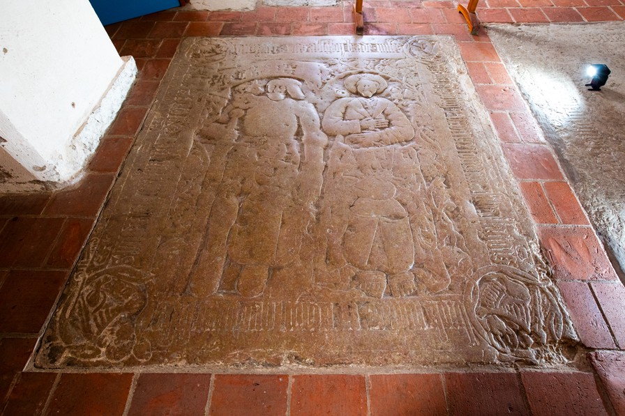 Gravsten over Axel (Absalon) Brahe til Krageholm og Tunbyholm, o. 1480-1551, og hustru Anne Brok, død 1524.