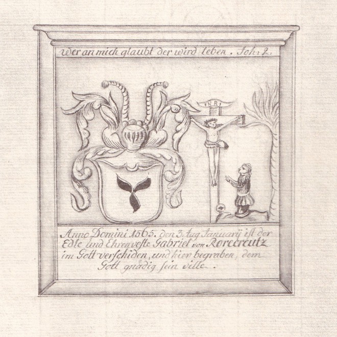Anno Domini 1565 den 3. tag Januarii ist der Edle und Ehrenveste Gabriel von Rorecreutz im Gott verschiden und hier begraben, dem Gott gnädig sein ville.