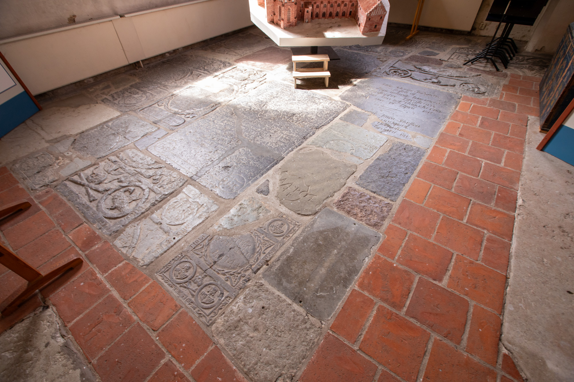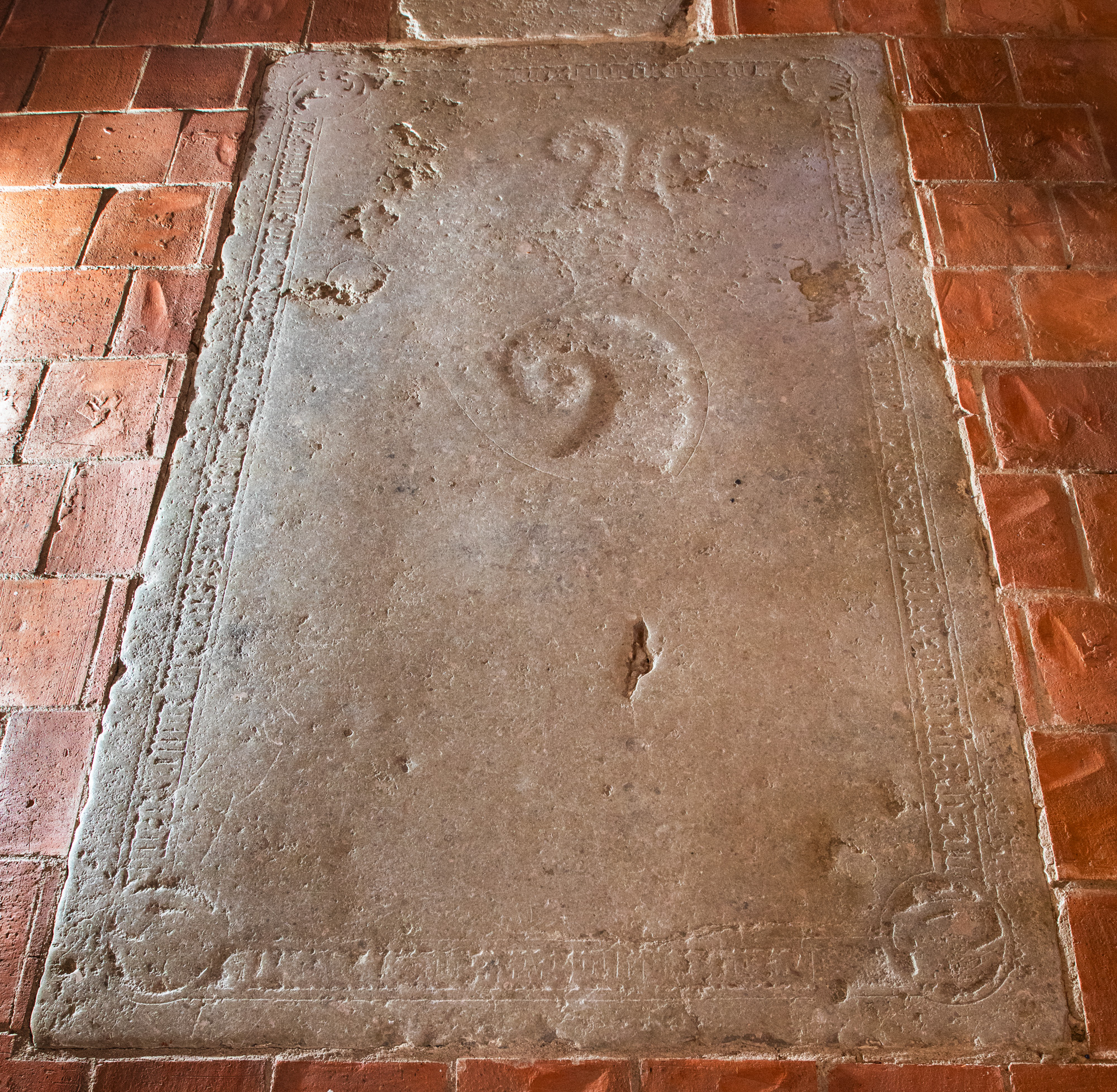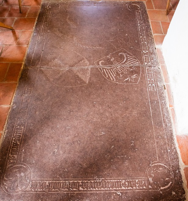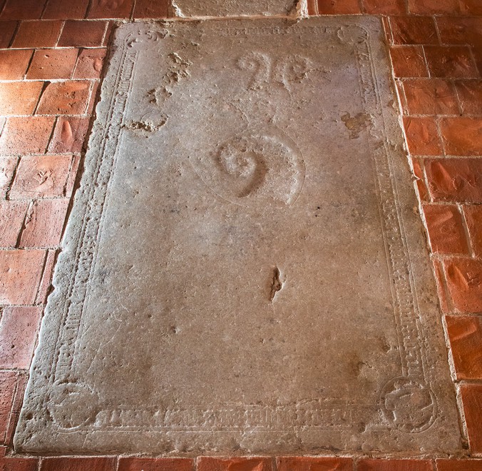 Gravsten over Jacob Petri, død 1490. Han var forstander for fransciskanerklosteret.