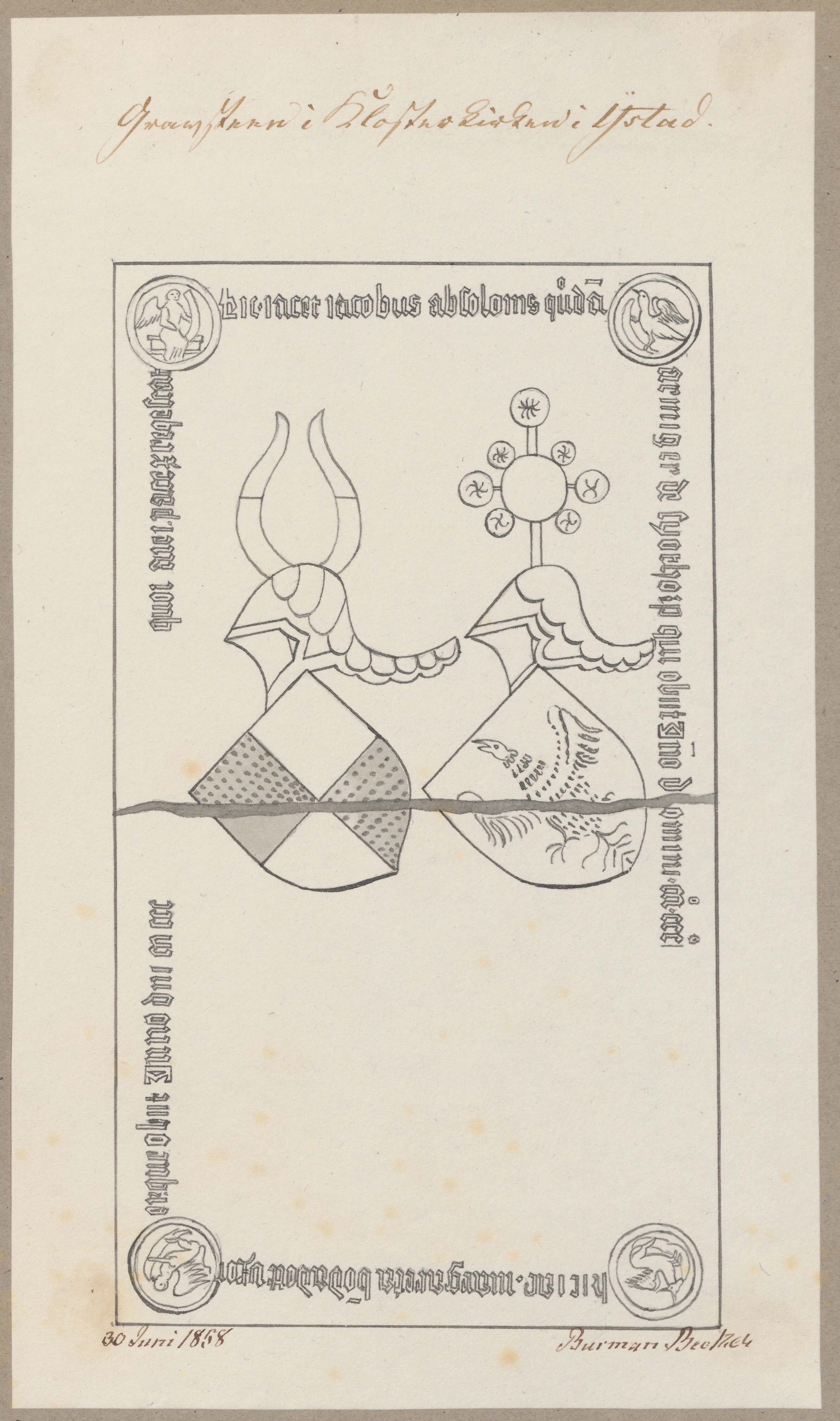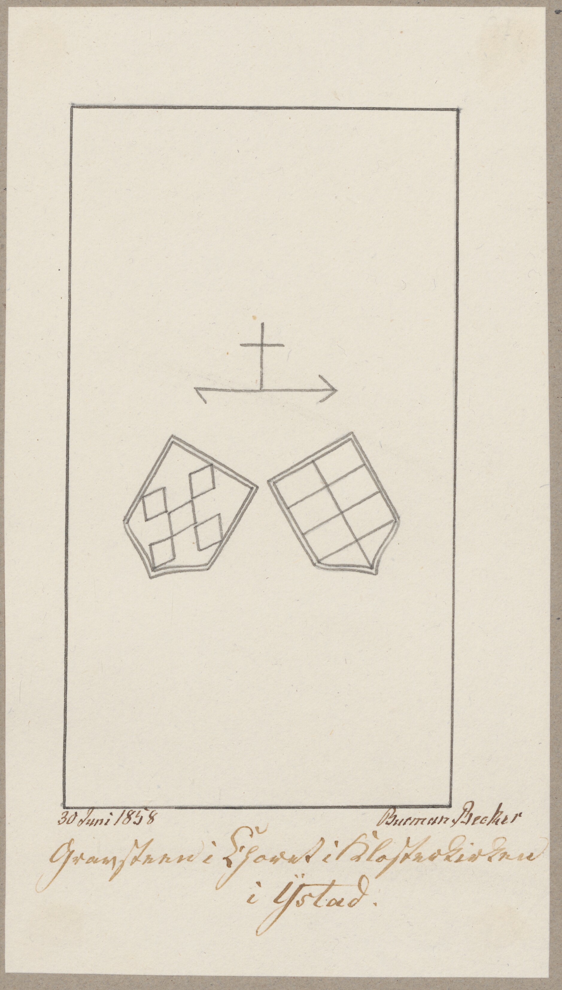 Korbuen, nordvange. Det kan være Revals (Tallinns) stiftsvåben med to korslagte sværd. Hvis tolkningen er rigtig, konkluderer Raneke, så er det det ældste eksempel på Revals stiftsvåben.