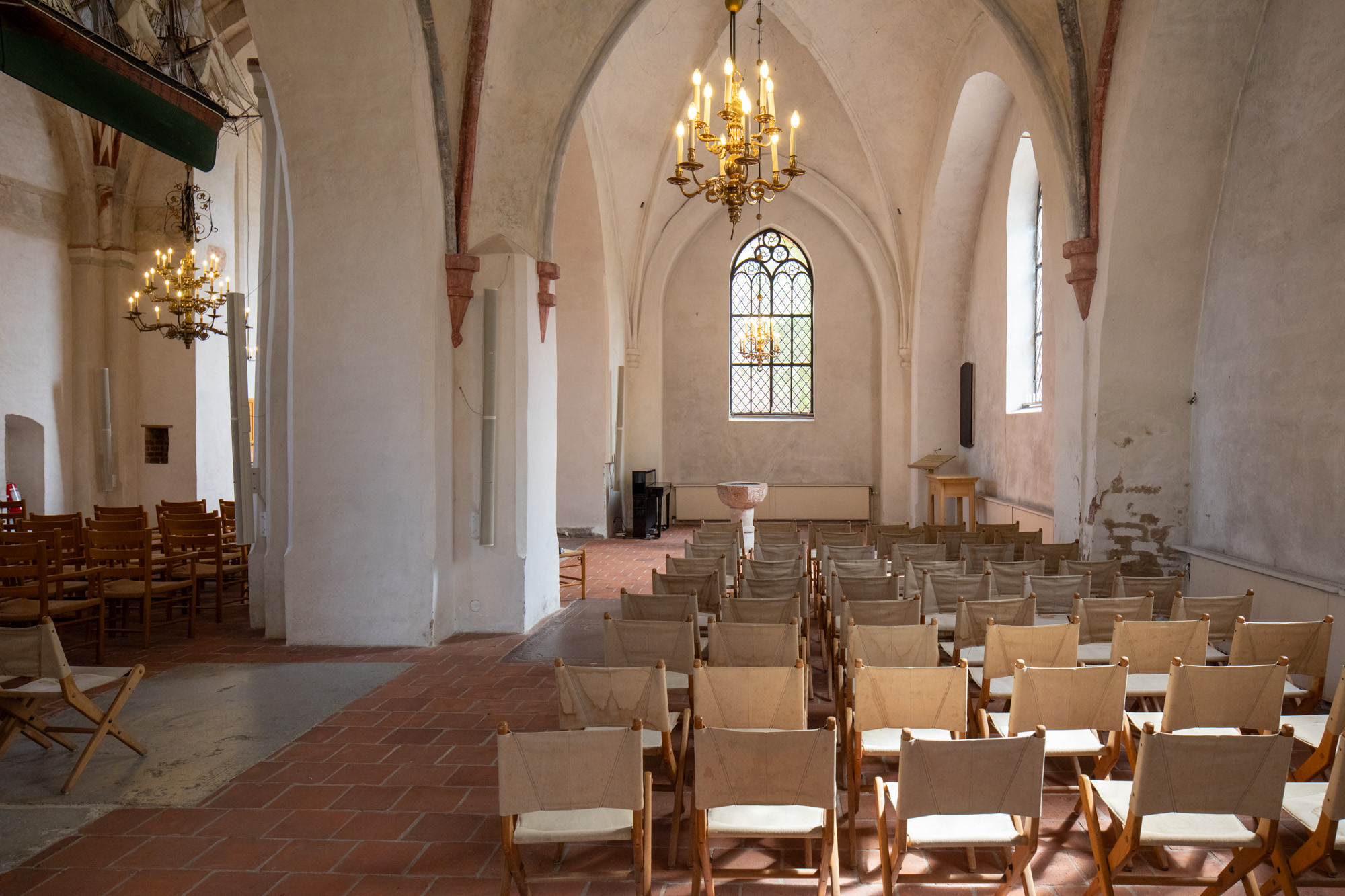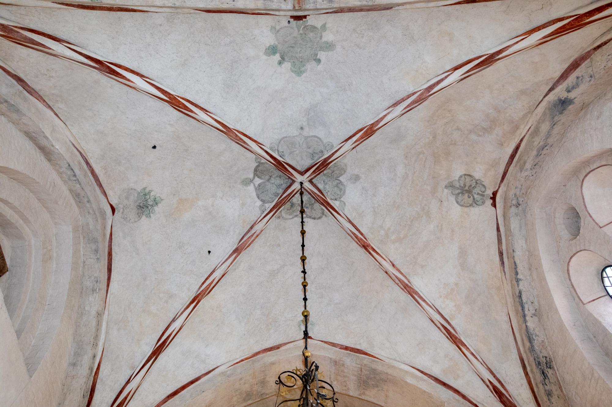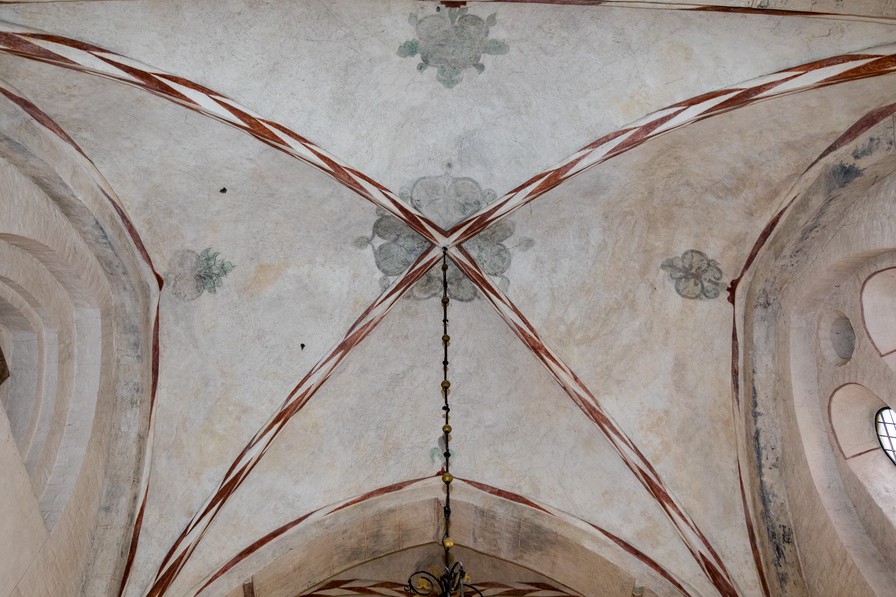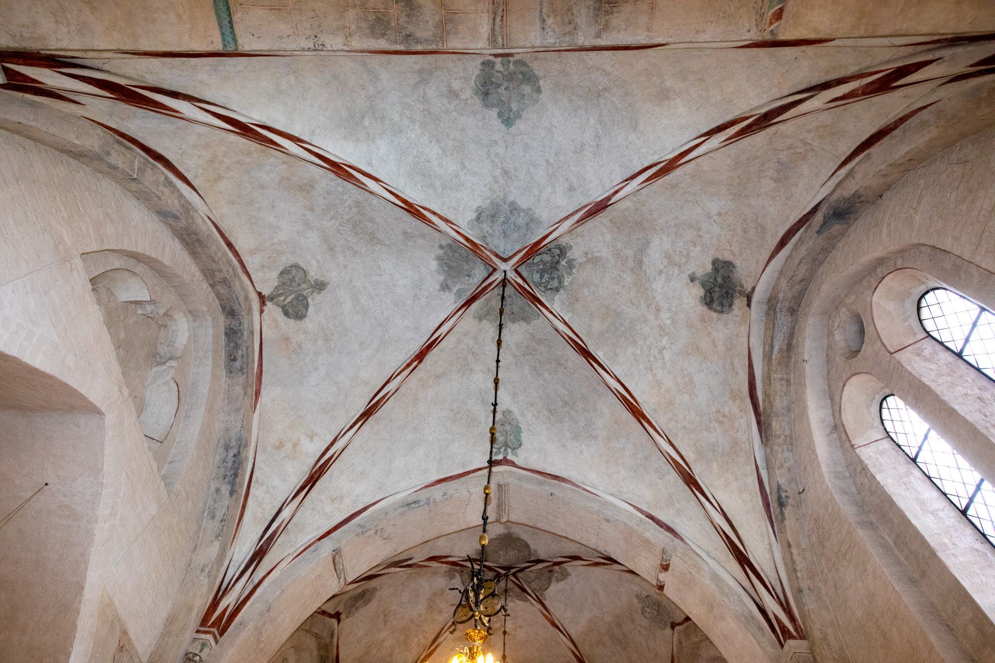 Der er kalkmalerier fra flere perioder. Ribbebemalingen i hovedskibets tre fag er sandsynligvis samtidig med hvælvingerne. De er udført i samme stil som tilsvarende bemaling i Dalby kirke. Svikkelsøjlerne har forskellige former for udsmykning. Nogle af dem har stadig et mandsansigt på baserne.