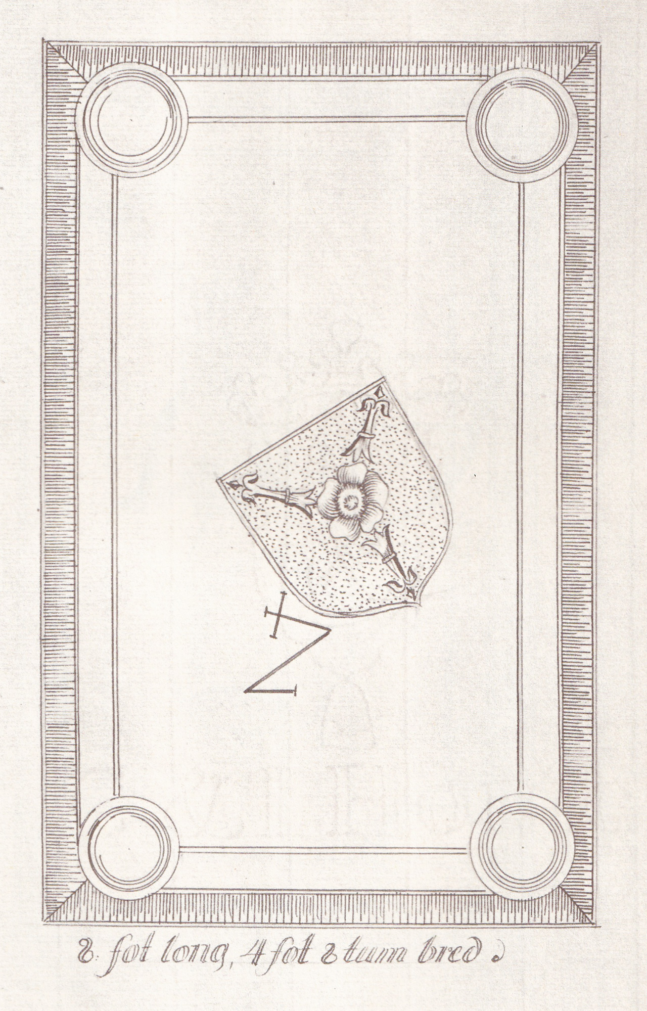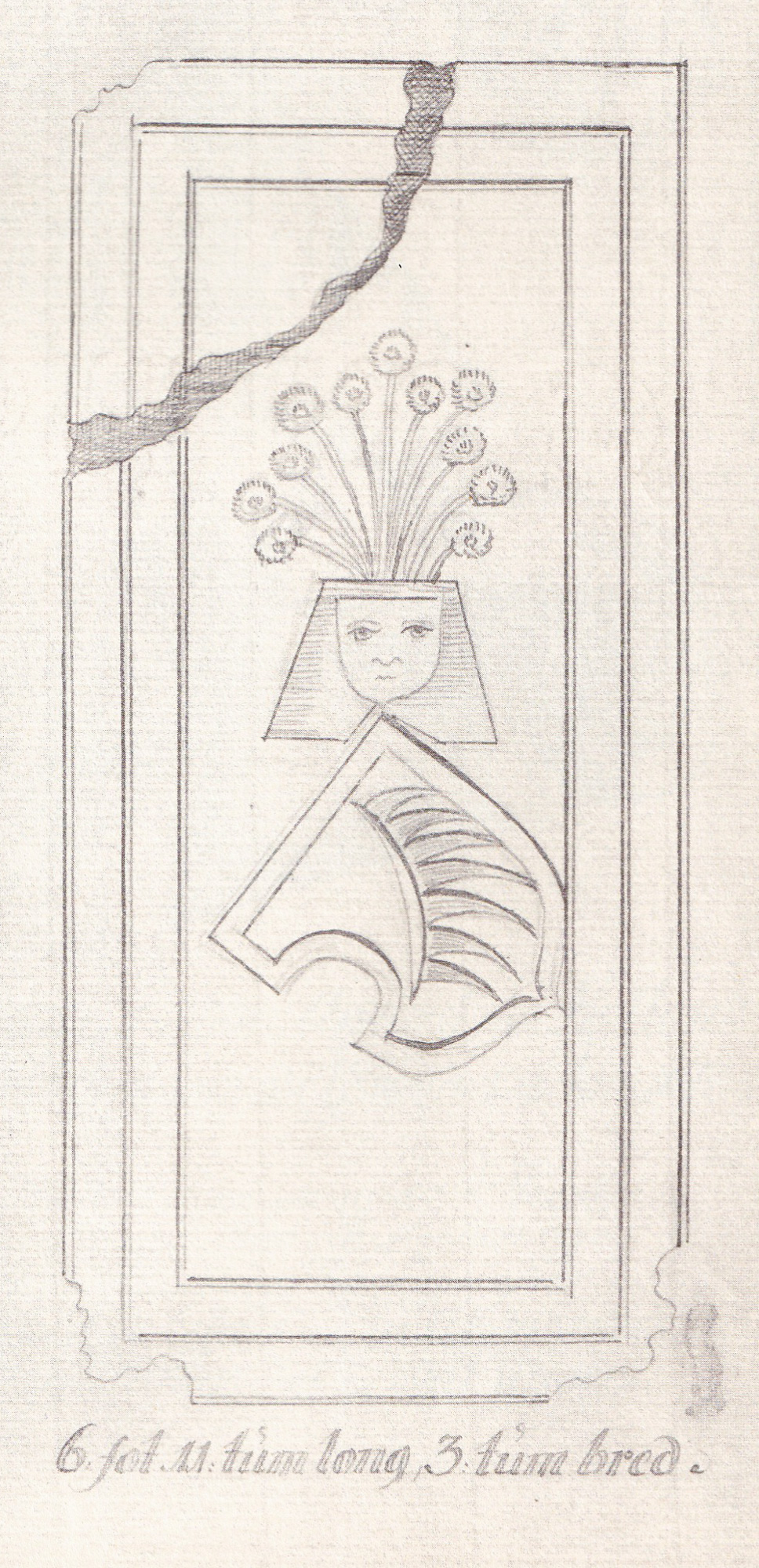 Der er flere gravsten, som der findes gamle tegninger af. Nogle af dem gengives nedenfor. Dels er de meget forskellige alt efter tegnerens formåen, dels tolker de stenene forskelligt, og dels er stenene i dag så blankslidte, at mange detaljer er væk.